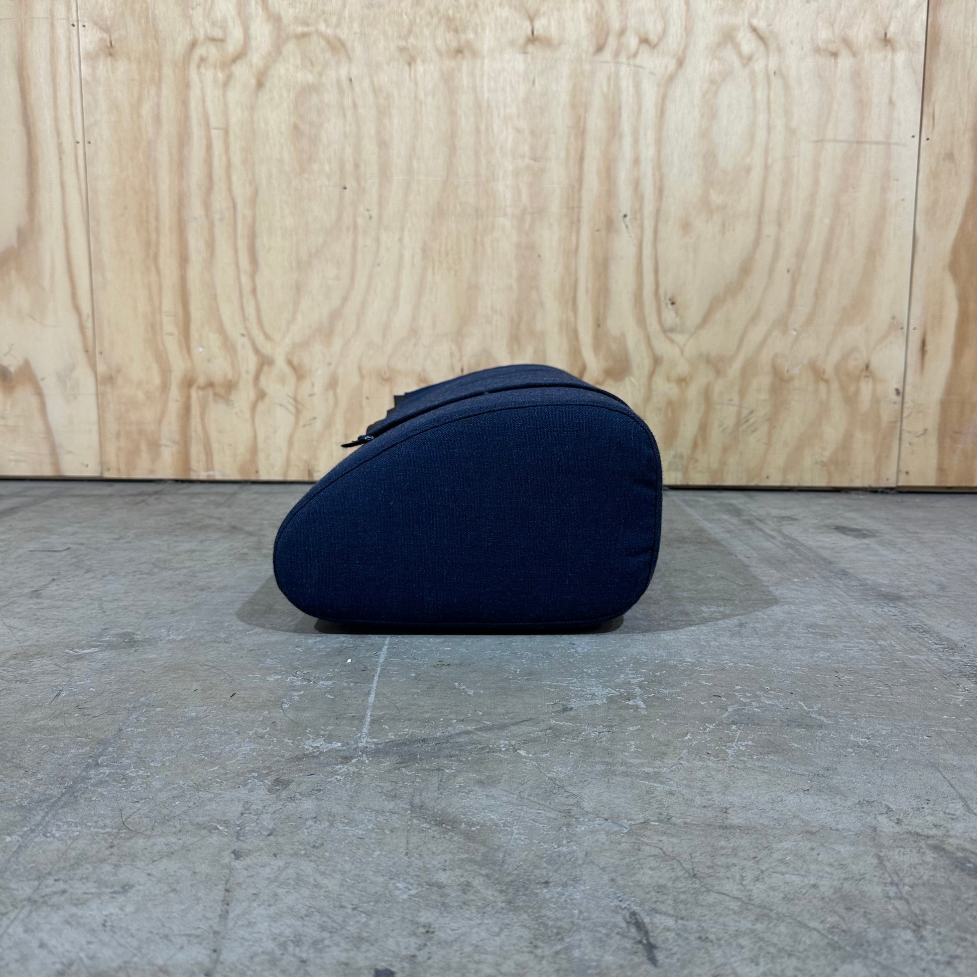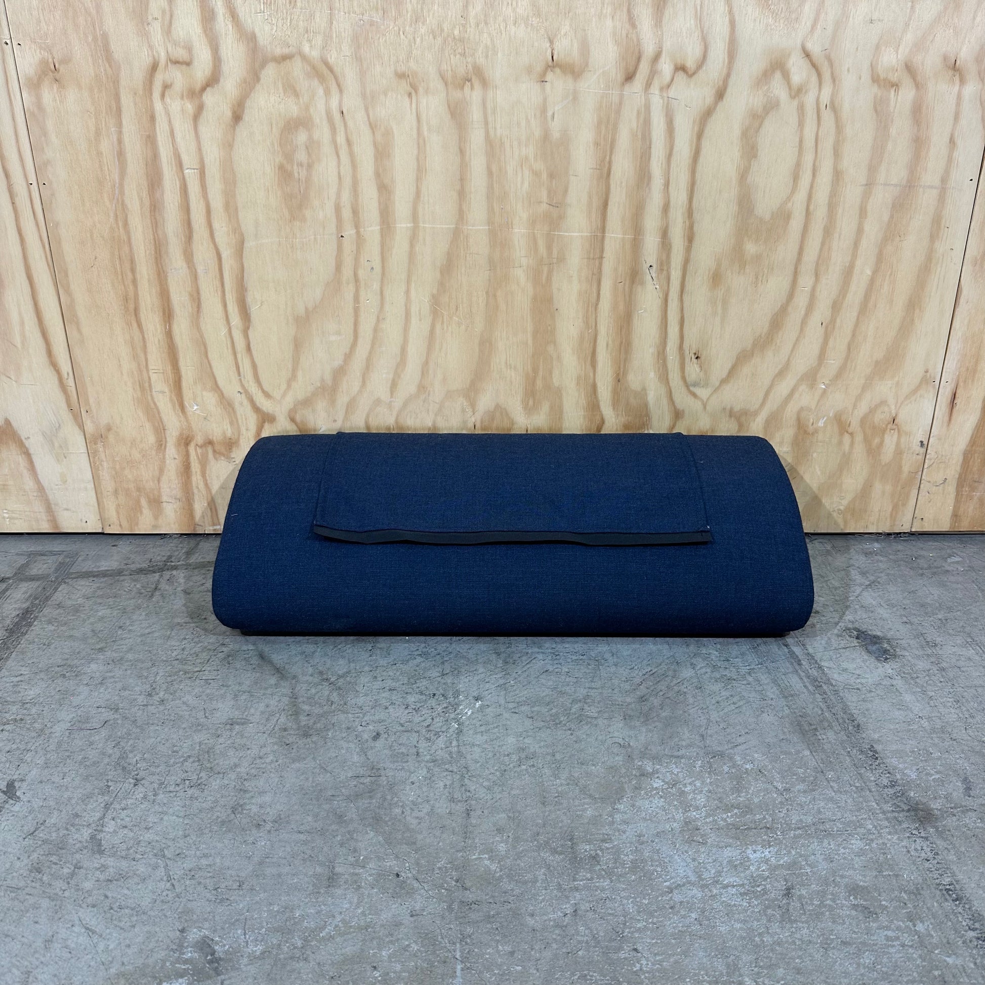 Offer your space a practical and stylish accent piece. Bolster cushions feature a cylindrical shape, perfect for providing lumbar or neck support on a sofa, daybed, or armchair. This particular item presents a rich, dark blue fabric cover with a subtle, possibly ribbed, texture. Black end straps with buckles add a tailored, slightly contemporary detail and likely function to secure the cushion's shape or facilitate carrying.