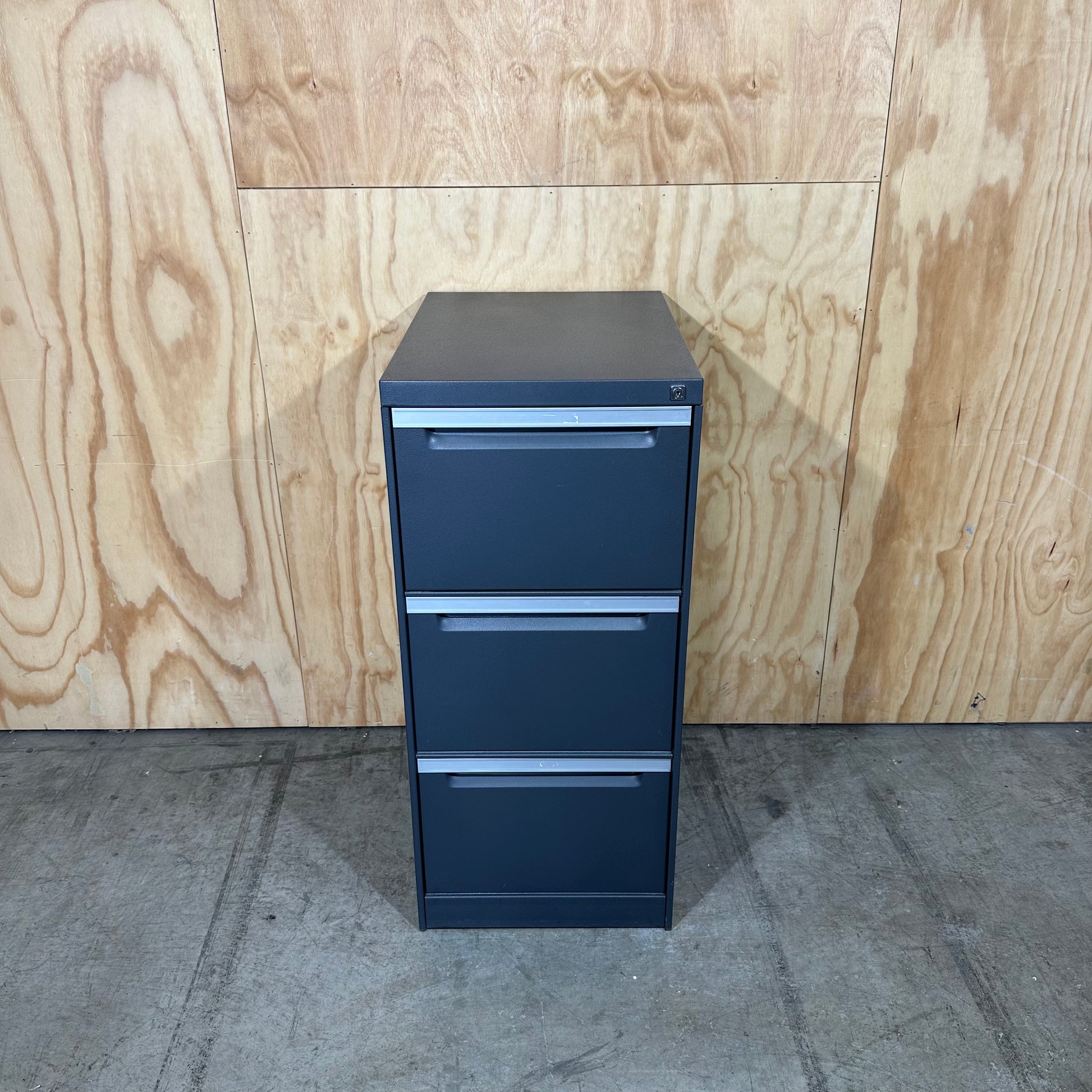 Store your documents securely in this dark grey three-drawer vertical filing cabinet. Constructed from powder-coated steel, this unit offers commercial-grade durability for frequent office use.