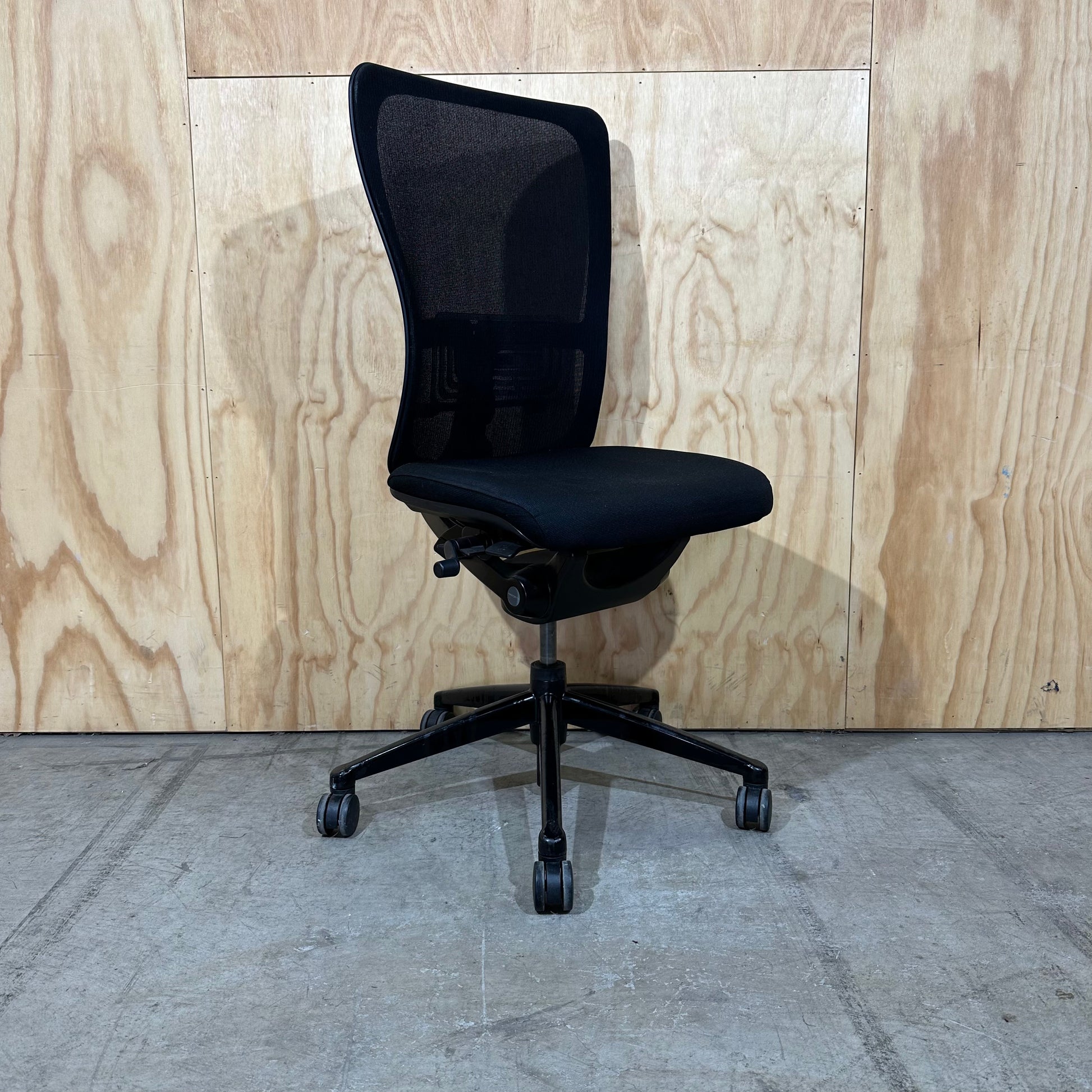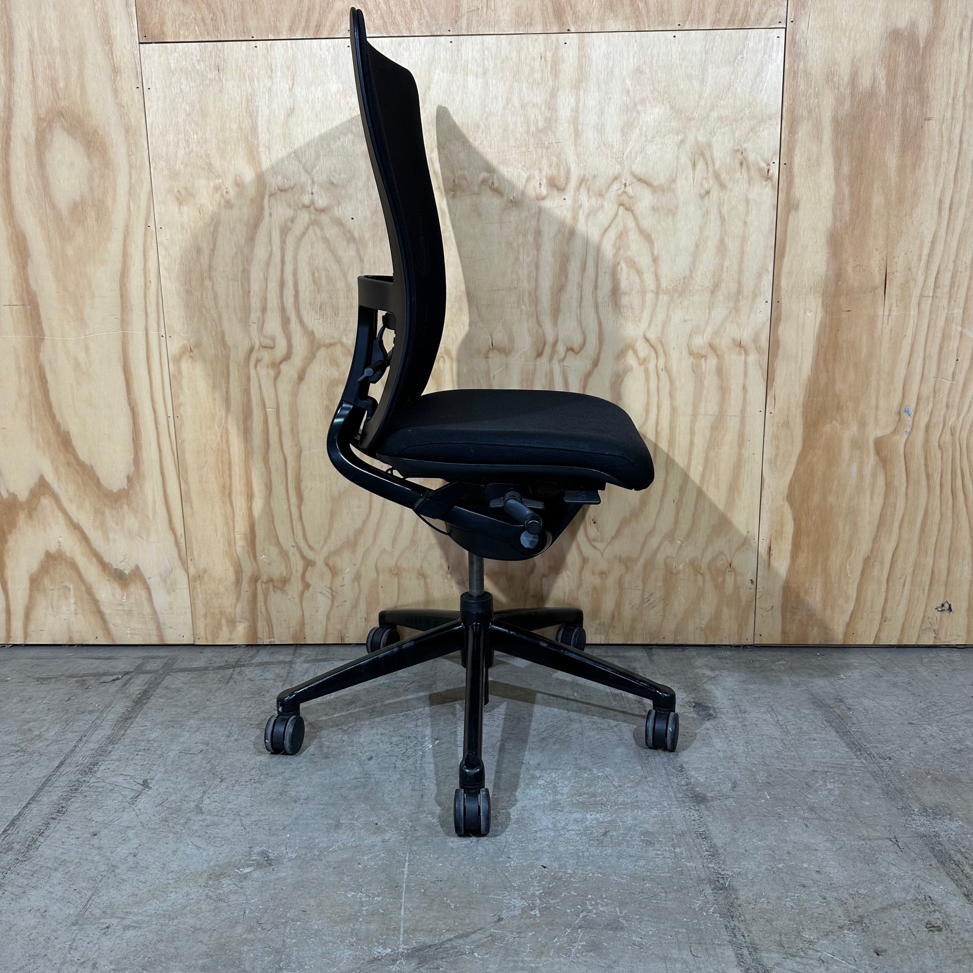 Experience the renowned comfort and precision of the Haworth Zody task chair. Ergonomic design meets sustainable construction in this high-performance office essential. Featuring a breathable black mesh backrest and a contoured black upholstered seat, comfort will be maintained during long work periods. Patented asymmetrical lumbar support, a standout feature, allows you to fine-tune lower back cushioning independently on each side for targeted relief, accommodating your body's natural asymmetry. This model includes a black five-star nylon base, smooth-rolling casters, and height-adjustable arms, promoting personalised posture and mobility. The intuitive controls simplify adjustments, ensuring you achieve optimum support and a balanced feel effortlessly.