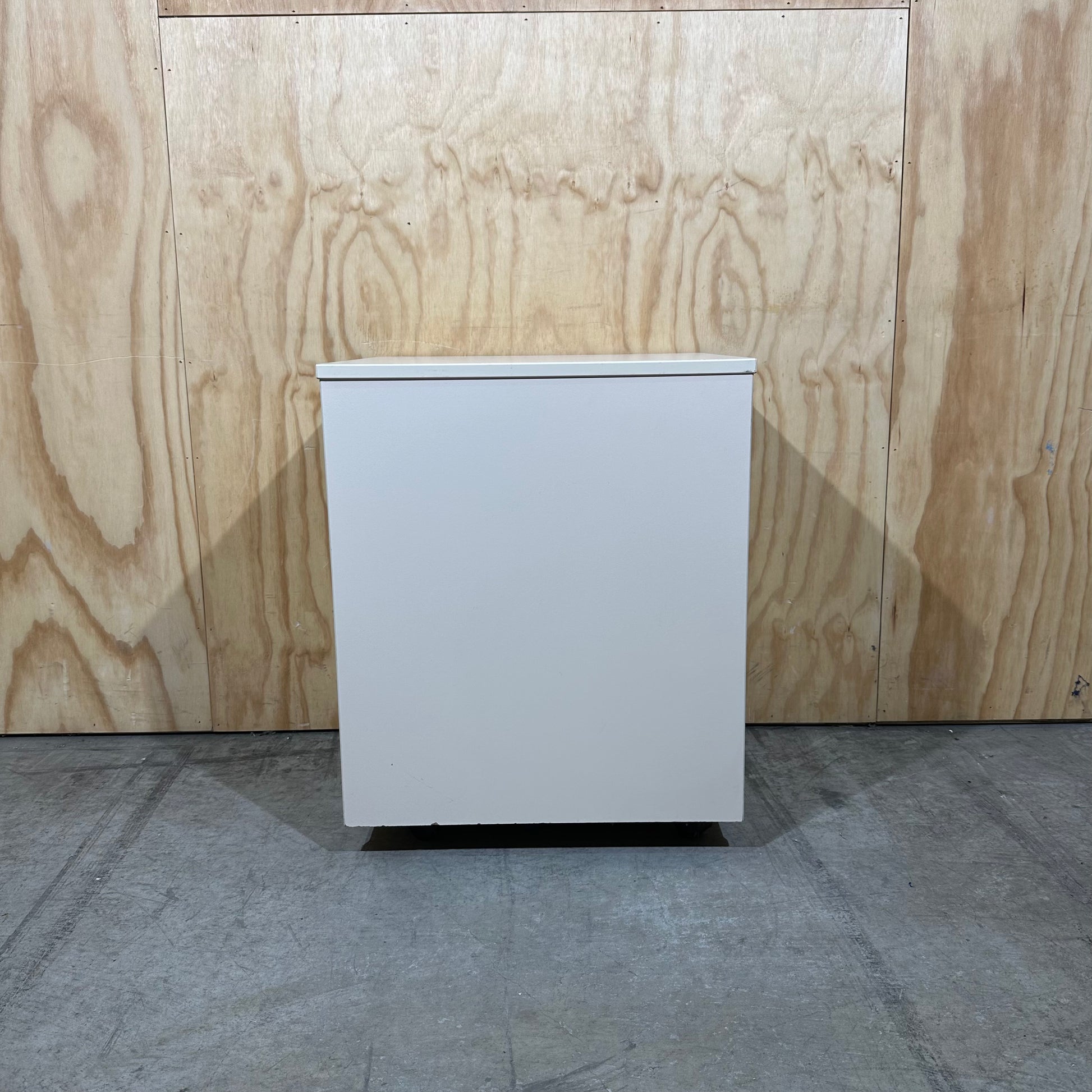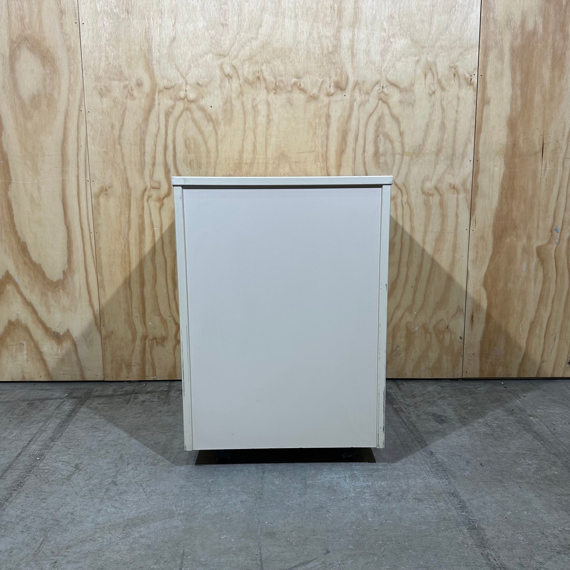This durable, commercial-grade three-drawer metal mobile pedestal offers a neutral aesthetic that integrates easily into any office setting. Heavy-duty construction ensures lasting performance and secure storage. Drawers feature robust metal runners, providing smooth and reliable access to contents. The compact, vertical design offers efficient filing and general storage without occupying significant floor space. Castors on the base allow for effortless movement and flexible placement in your workspace.
