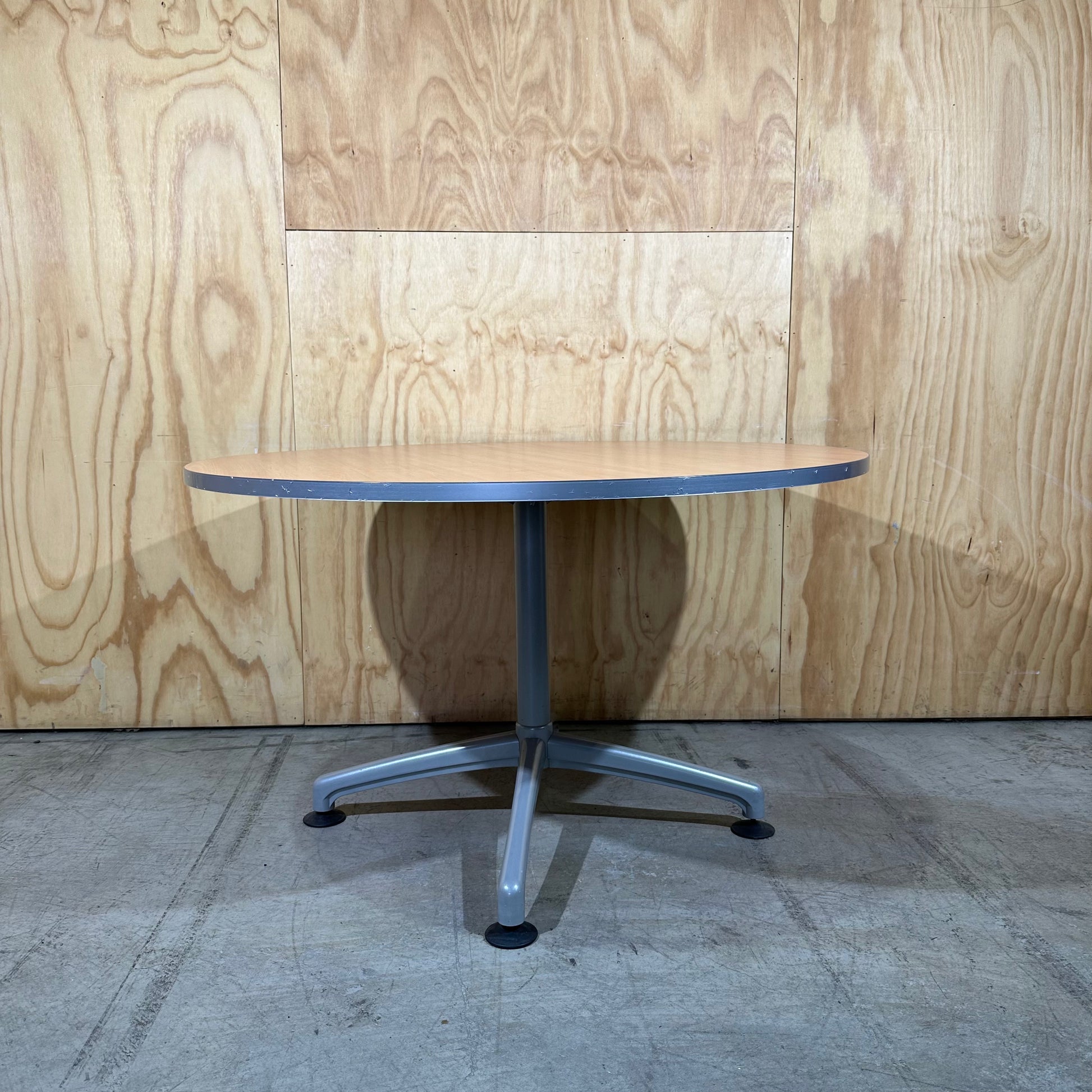 This round meeting table features a light oak laminate tabletop paired with a sturdy four star grey steel base. Adjustable levelling feet ensure stability on uneven surfaces, while the circular design promotes inclusive communication during collaborative tasks. You can expect a durable surface resistant to scratches and spills, making it suitable for high traffic environments