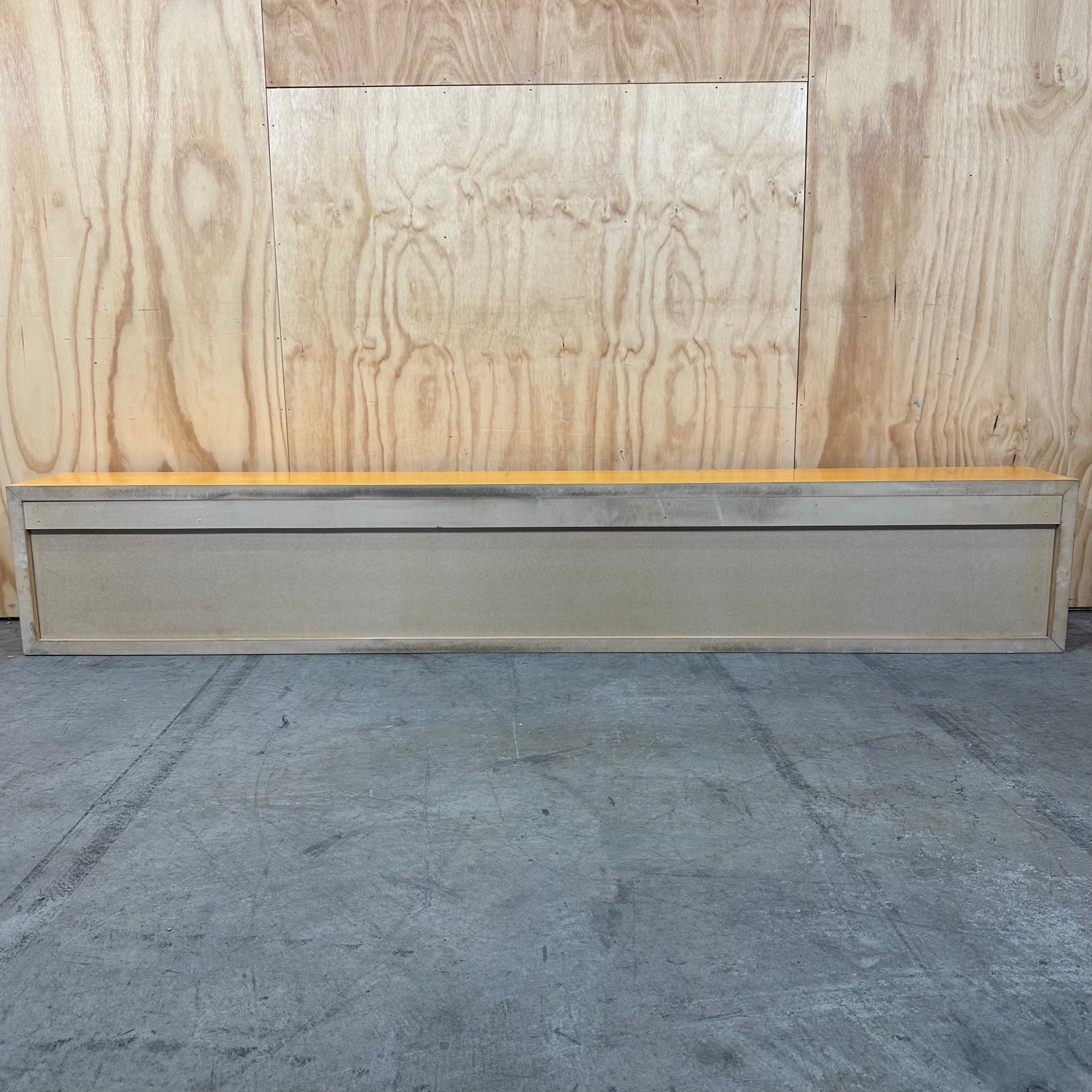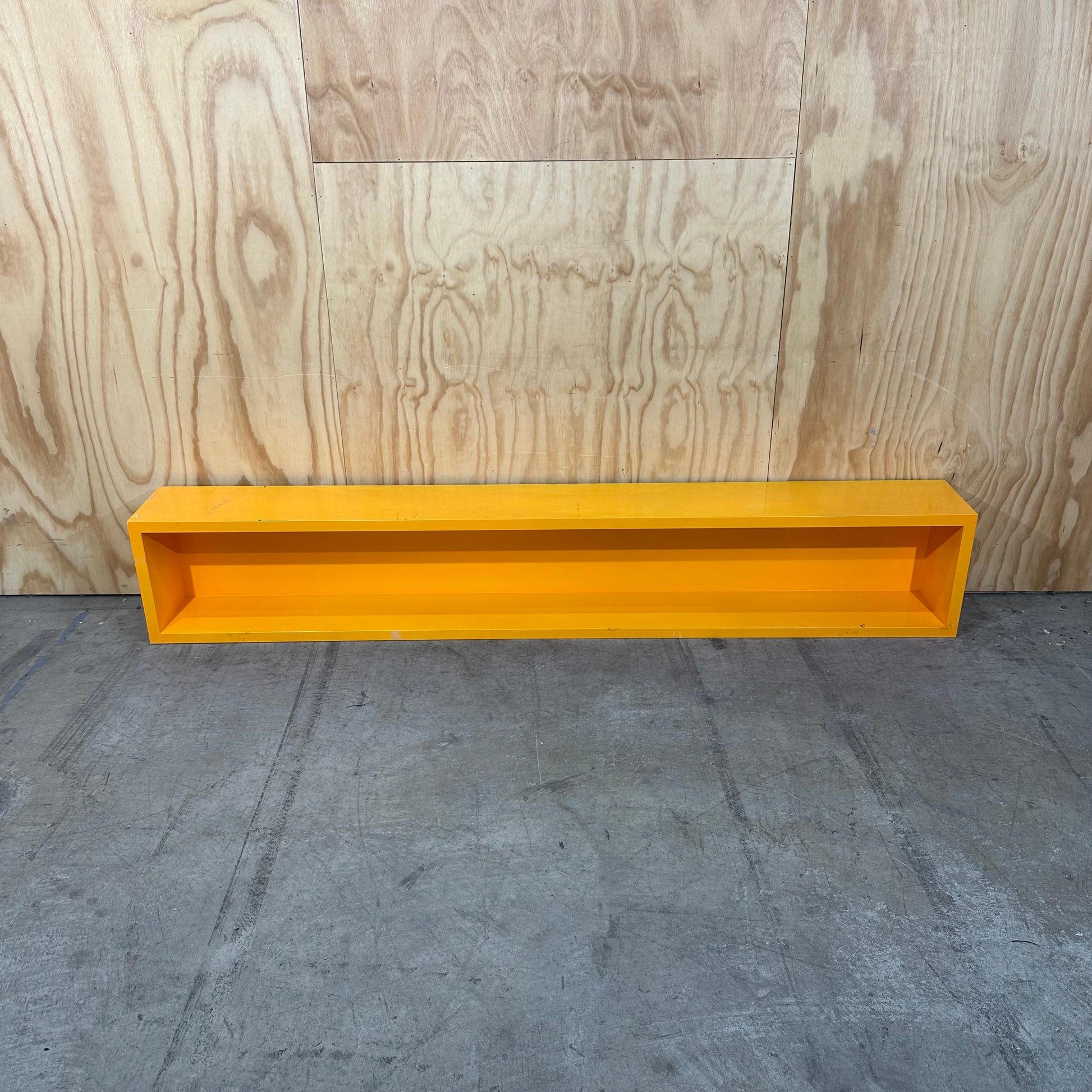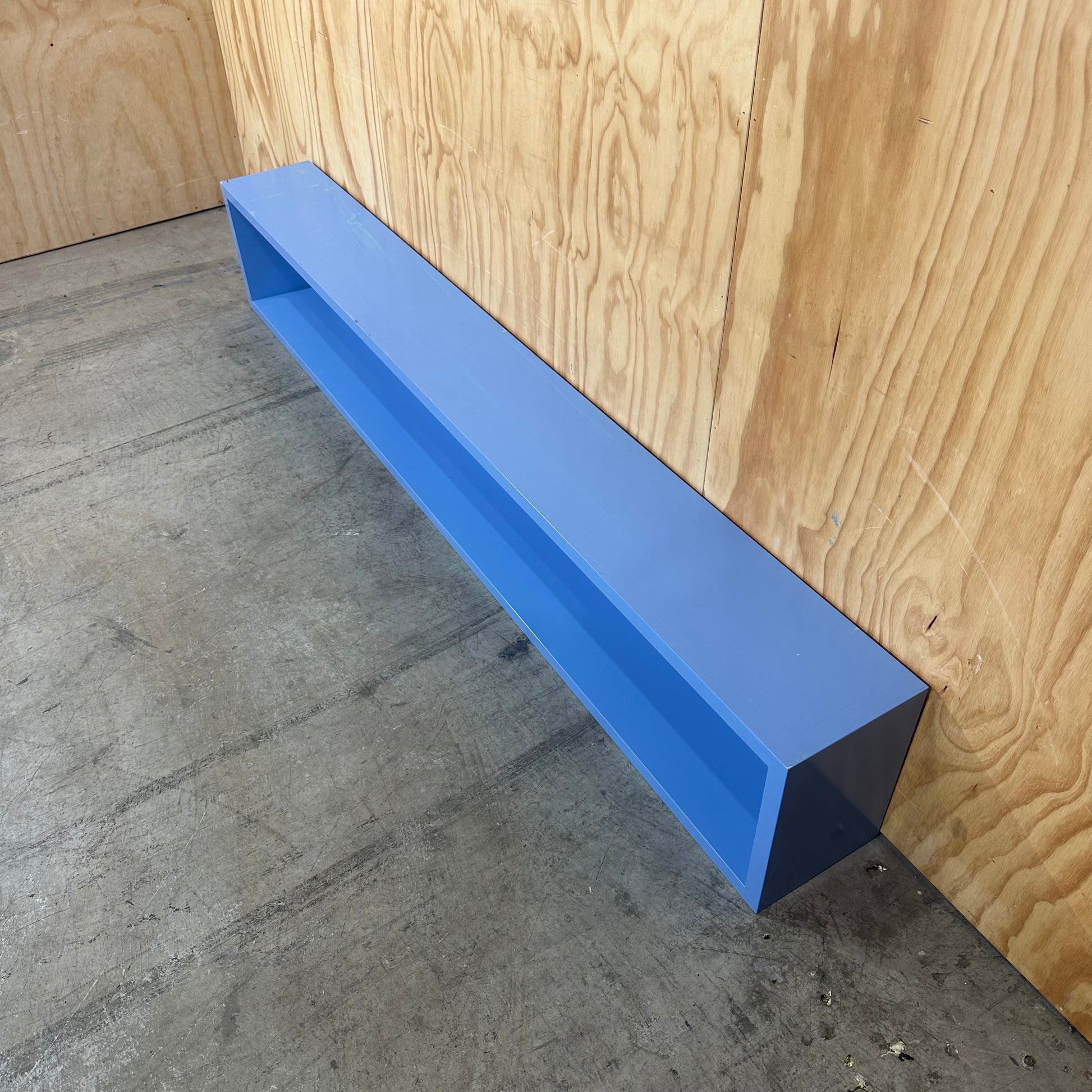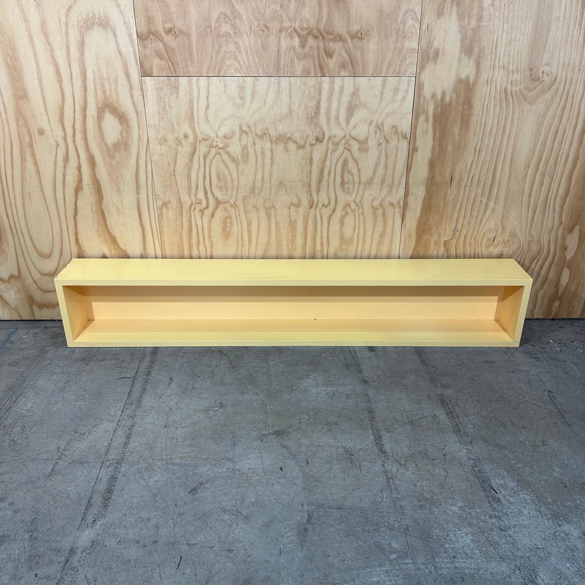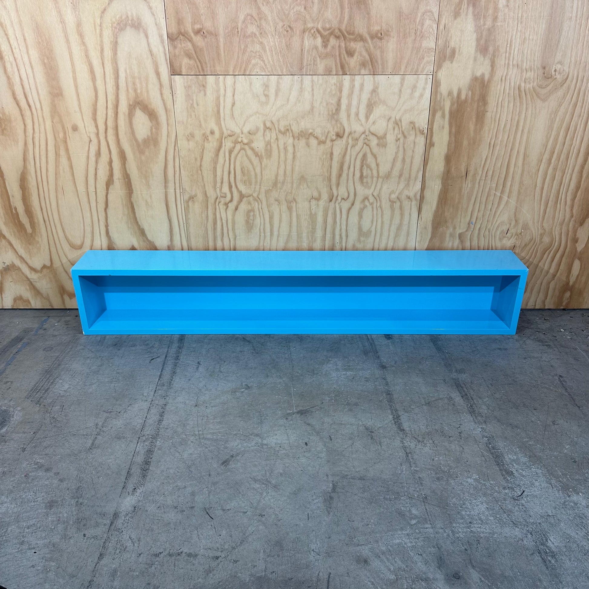 Presenting a selection of sleek, wall-mounted display units, these long rectangular floating shelves offer a practical yet stylish storage solution for your home or office. Shelves feature clean lines and a simple box profile, designed to provide seamless storage without visible brackets. They have a smooth, durable lacquer finish, ensuring colour longevity and easy maintenance. Each unit provides generous horizontal space, perfect for showcasing art, books, or decorative objects. Available colours include vibrant Royal Blue, calming Aqua, crisp Pale Grey, bright Sunny Yellow, zesty Mint Green, and soft Pastel Yellow, allowing you to introduce a deliberate pop of colour to your interior design.